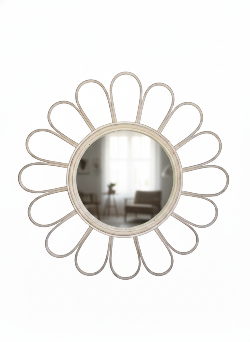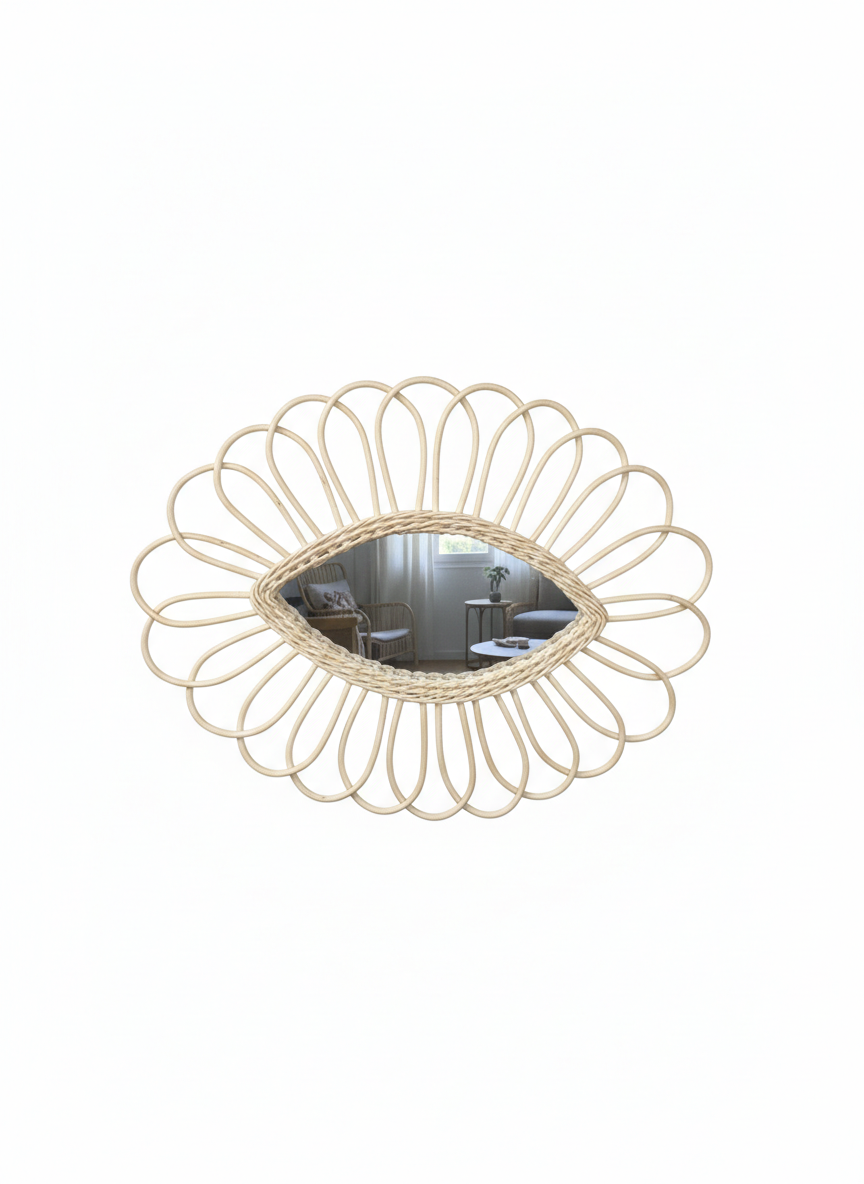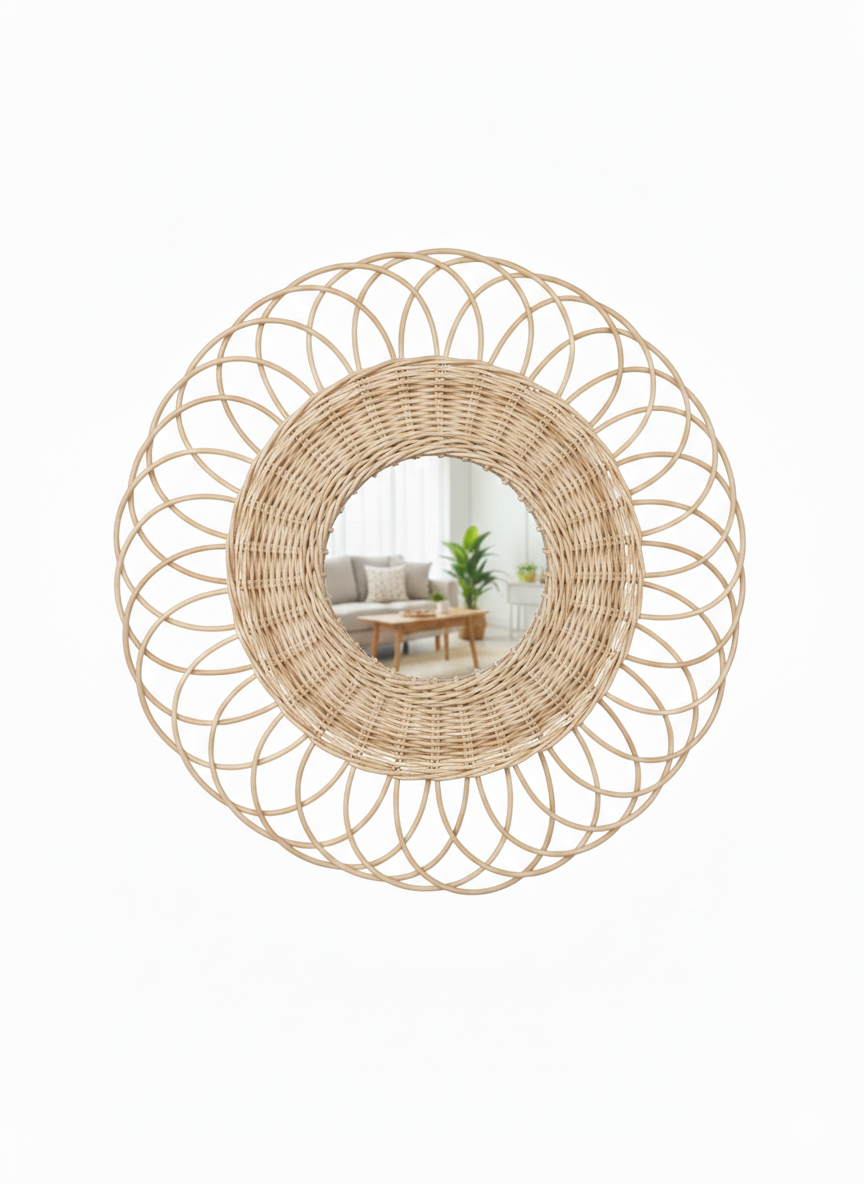 Both decorative and functional, this mirror reflects light while enhancing the space with texture and artisanal charm, making it a timeless addition to your home.