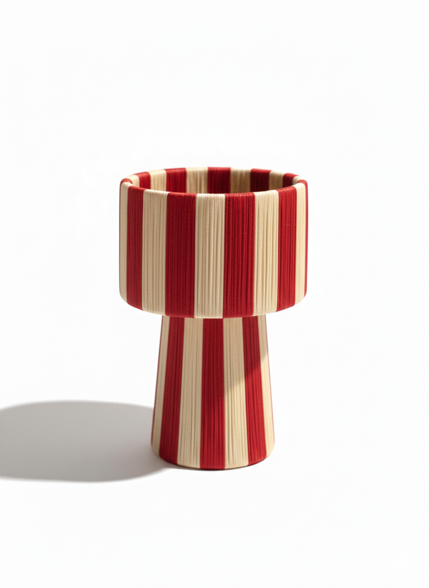 Designed to softly diffuse light, it creates a warm and inviting atmosphere in living rooms, bedrooms, terraces, or cozy corners. The structured pedestal shape adds a modern touch while preserving its authentic handmade spirit.